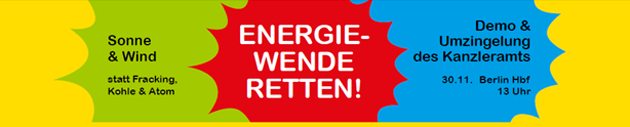 Am 30. November wird die überall spürbare Unzufriedenheit mit dem Tempo und der (Nicht-)Gestaltung der Energiewende auf der Straße in Berlin zu sehen sein. Wir wollen die zukünftige Bundesregierung erinnern für wen sie die Energiewende machen und was wir uns für eine zukünftige Energieversorgung wünschen: sauberen, sicheren, bezahlbaren Strom aus Bürgerhand!